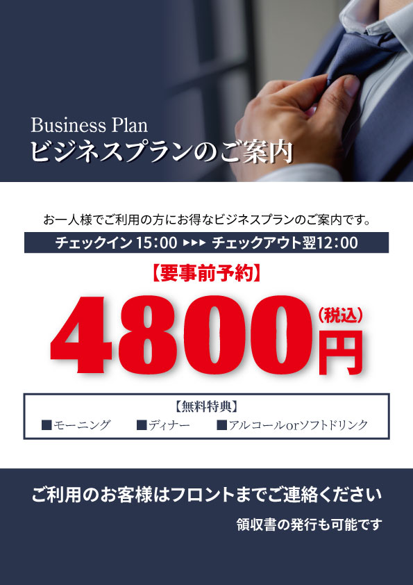 ビジネスプランのご案内 お1人様用ビジネスプラン開始致しました! 【要事前予約】 15:00~チェックイン可能で4800円 多彩な無料サービスもございます。詳しくはホテルにお問合せ下さい。 お楽しみグッズ追加!! 前の記事 【クリスマス月間】スイーツサービス 次の記事